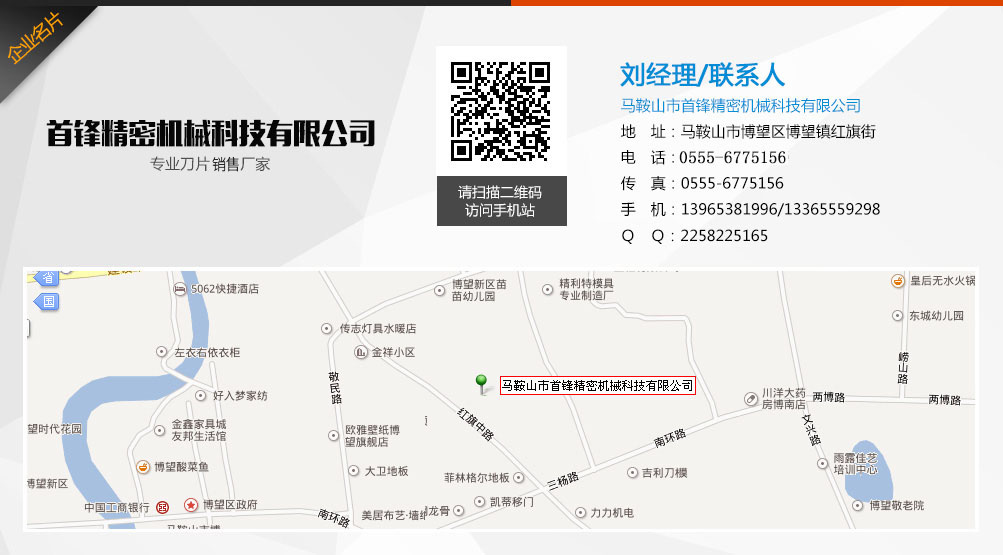 馬鞍山市首鋒精密機械科技有限公司位于中國之鄉馬鞍山市博望區博望鎮紅旗街。地理環境優越,交通便利。工業區內314省道貫穿,連接江、浙、滬、皖,距南京祿口國際機場30公里。   我們專業研發銷售各種機械圓刀、長刀、分切刀片、沖剪刀、剪板機刀片、等沖壓剪切刀具機械配件。產品廣泛應用于冶金、造紙、紙品加工、印刷、橡膠工業、塑料、木材加工、食品、金屬加工、皮革、無紡布、不干膠、膠帶、板材加工、軋鋼、紡織、五金機械等行業。   馬鞍山市首鋒精密機械科技有限公司,機械刀片加工歷史悠久,具有豐富的切削刀具加工經驗,擁有多條國內先進的研發設備和一套科學加工工藝,在保證了產品質量和品質的同時,使產品生產做到了程序化和規?;?  我們本著“誠信、求精、高效”的精神,期待著與國內外各界開展更為廣泛的交流與合作!